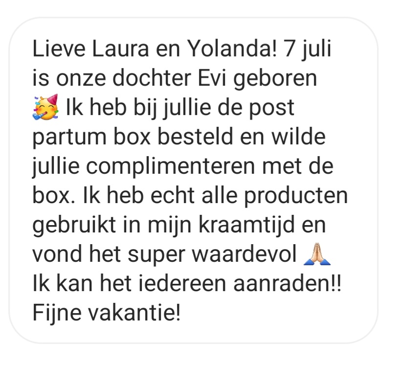 Door de Postpartumbox was mijn kraamtijd super ontspannen en voelde ik me al snel weer sterk.